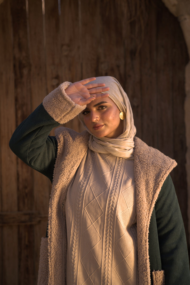 قطعة ناعمة بتفاصيل هادية. خامة قطنية مبطنة فرو بخفة تدي إحساس دافي ومريح طول اليوم